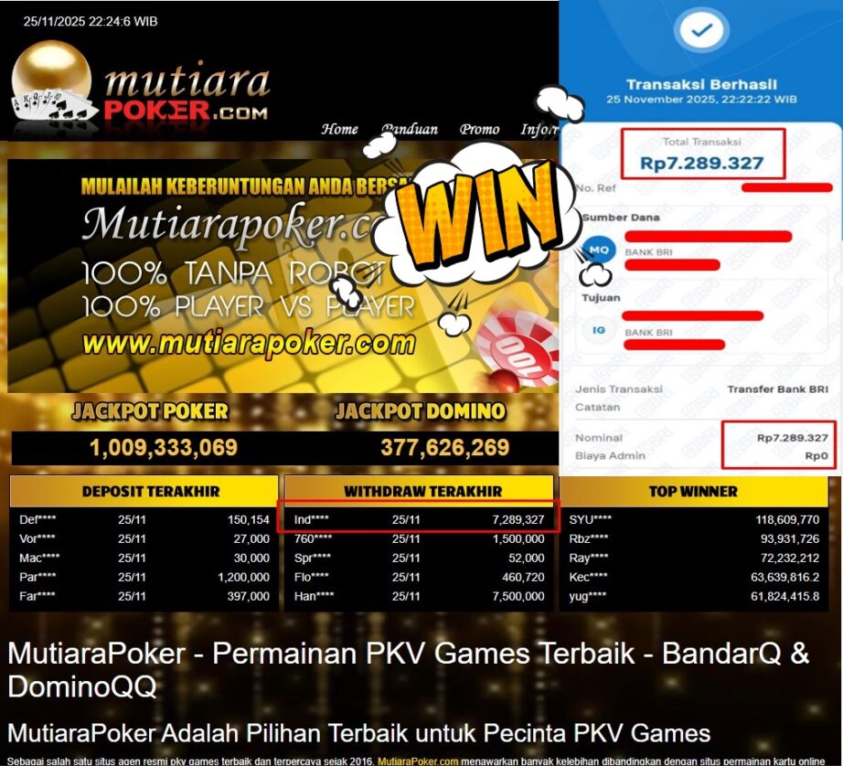 Bukti Withdraw ( 7.289.327,- ) Member Setia MutiaraPoker