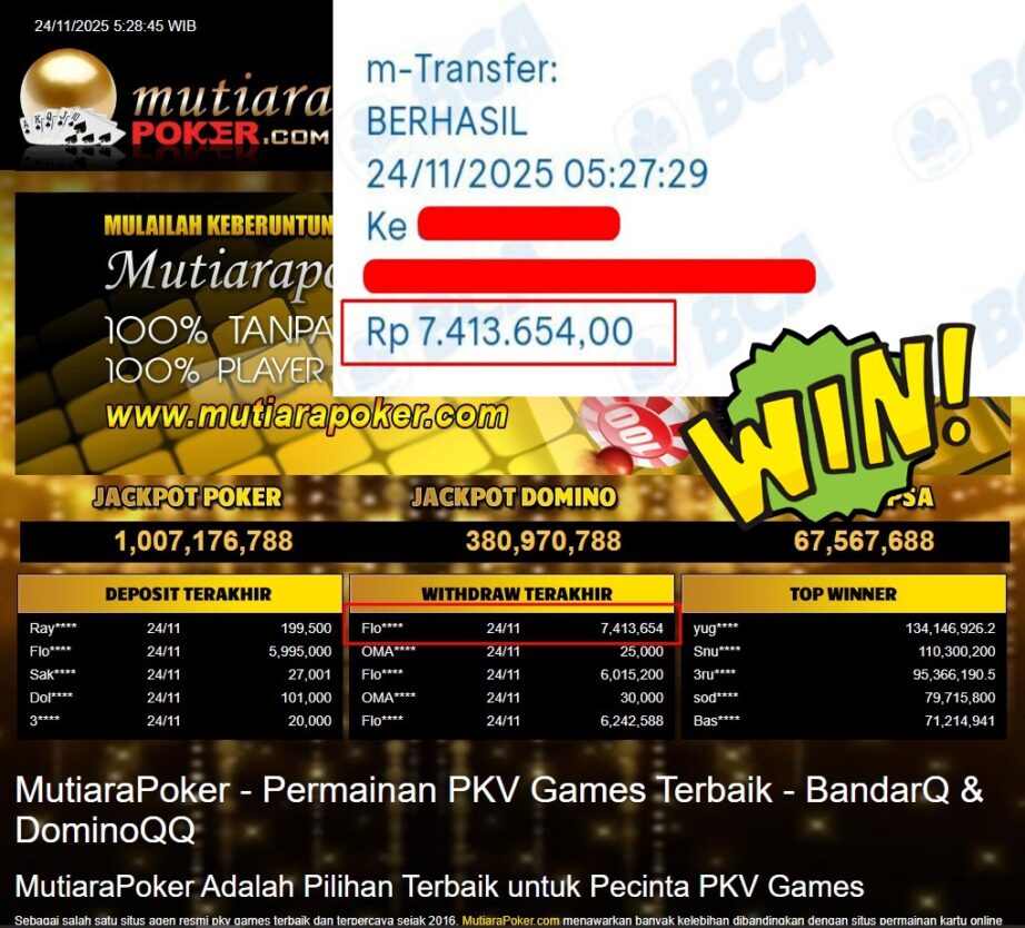 Bukti Withdraw ( 7.413.654,- ) Member Setia MutiaraPoker