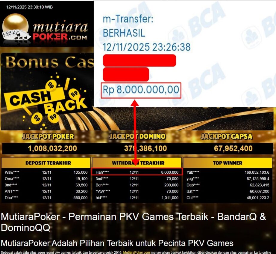 Bukti Withdraw ( 8.000.000,- ) Member Setia MutiaraPoker