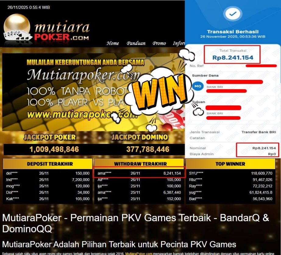Bukti Withdraw ( 8.241.154,- ) Member Setia MutiaraPoker