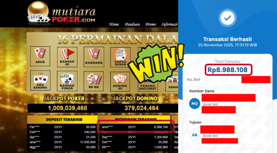 Bukti Withdraw MutiaraPoker