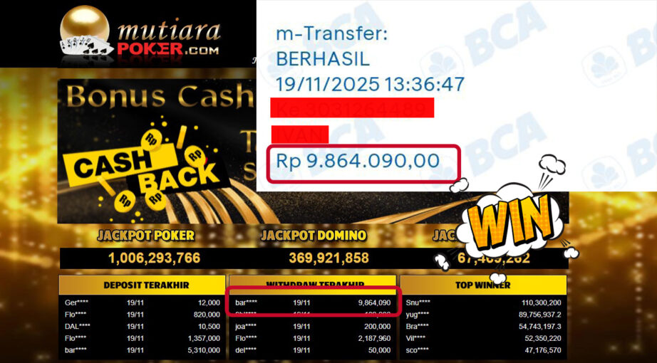 Bukti Withdraw ( 9,864,090,- ) Member Setia MutiaraPoker