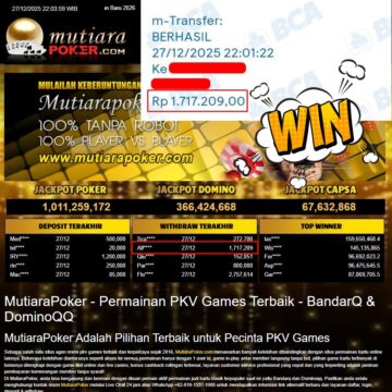 Bukti Withdraw ( 2,652,000,- ) Member Setia MutiaraPoker