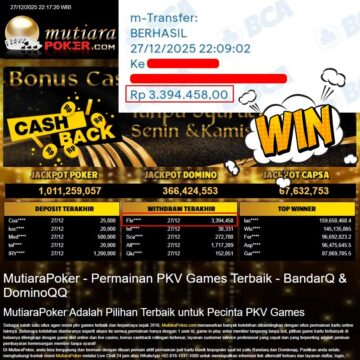 Bukti Withdraw ( 3.394.458,- ) Member Setia MutiaraPoker