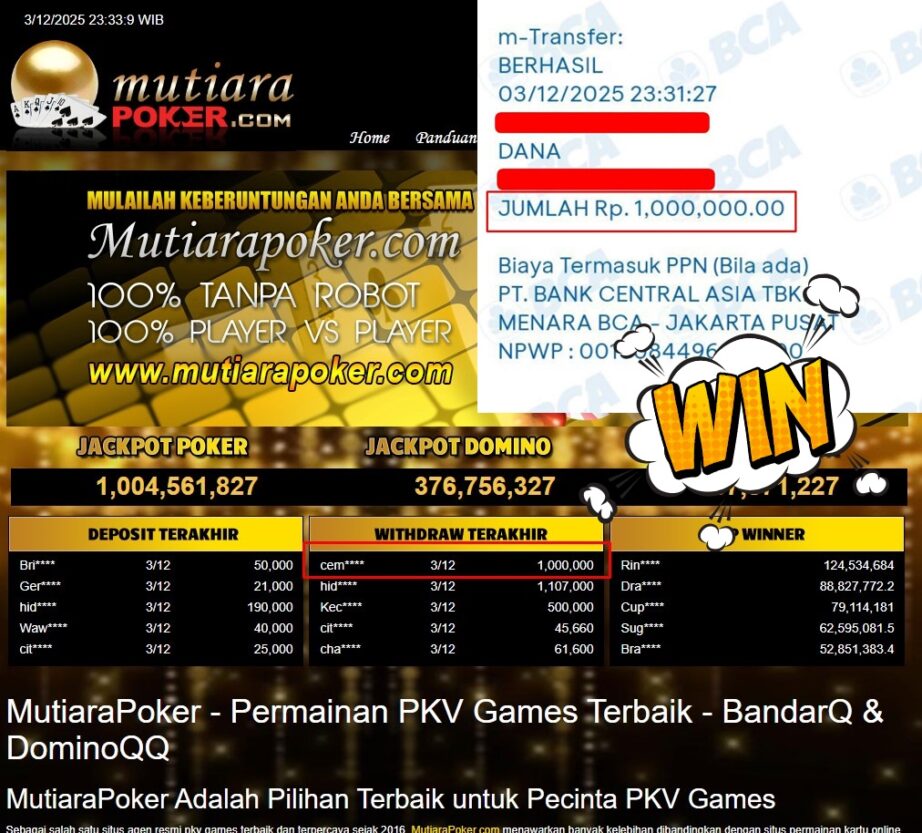 Bukti Withdraw MutiaraPoker