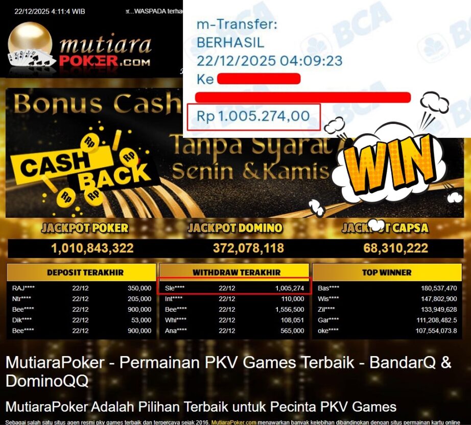 Bukti Withdraw MutiaraPoker