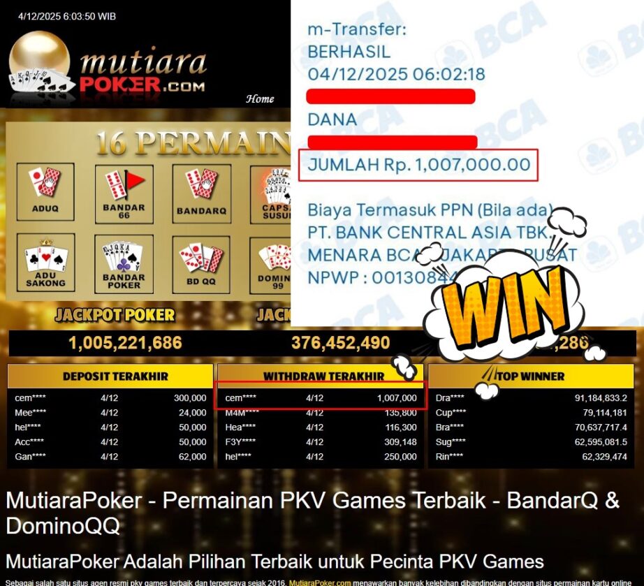 Bukti Withdraw ( 1.007.000,- ) Member Setia MutiaraPoker