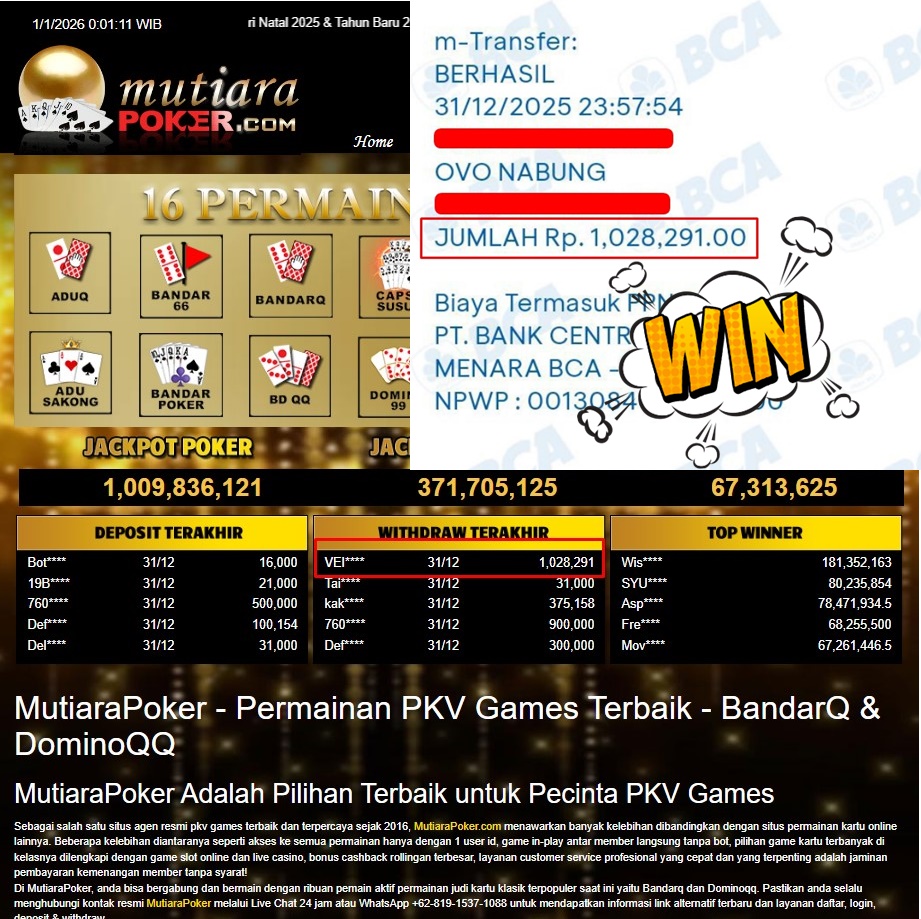 Bukti Withdraw ( 1.028.291,- ) Member Setia MutiaraPoker