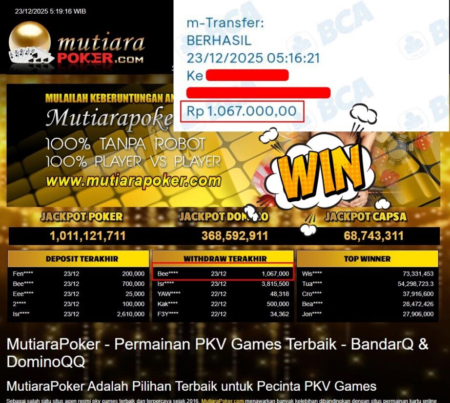 Bukti Withdraw ( 1.067.000,- ) Member Setia MutiaraPoker
