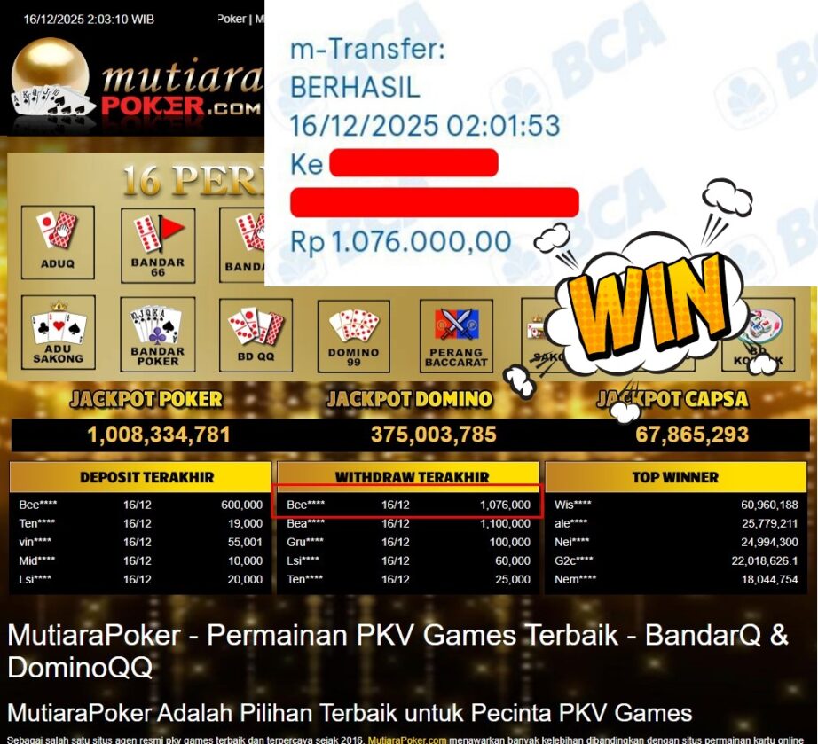 • Bukti Withdraw ( 1.076.000,- ) Member Setia MutiaraPoker