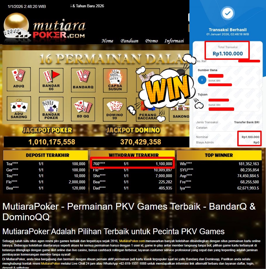 Bukti Withdraw MutiaraPoker