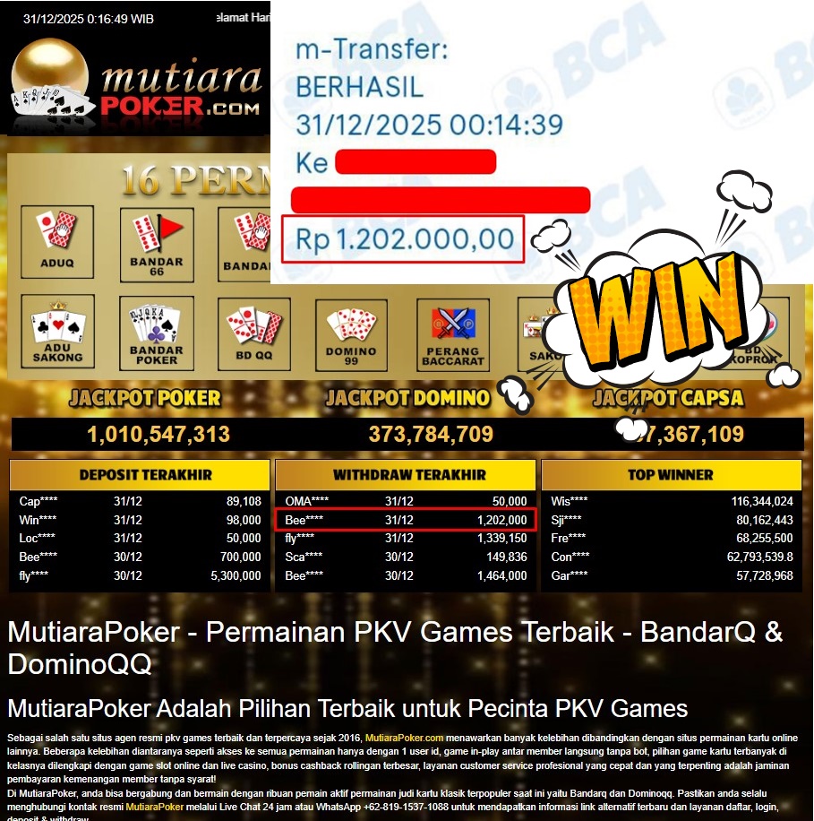 Bukti Withdraw ( 1.202.000,- ) Member Setia MutiaraPoker