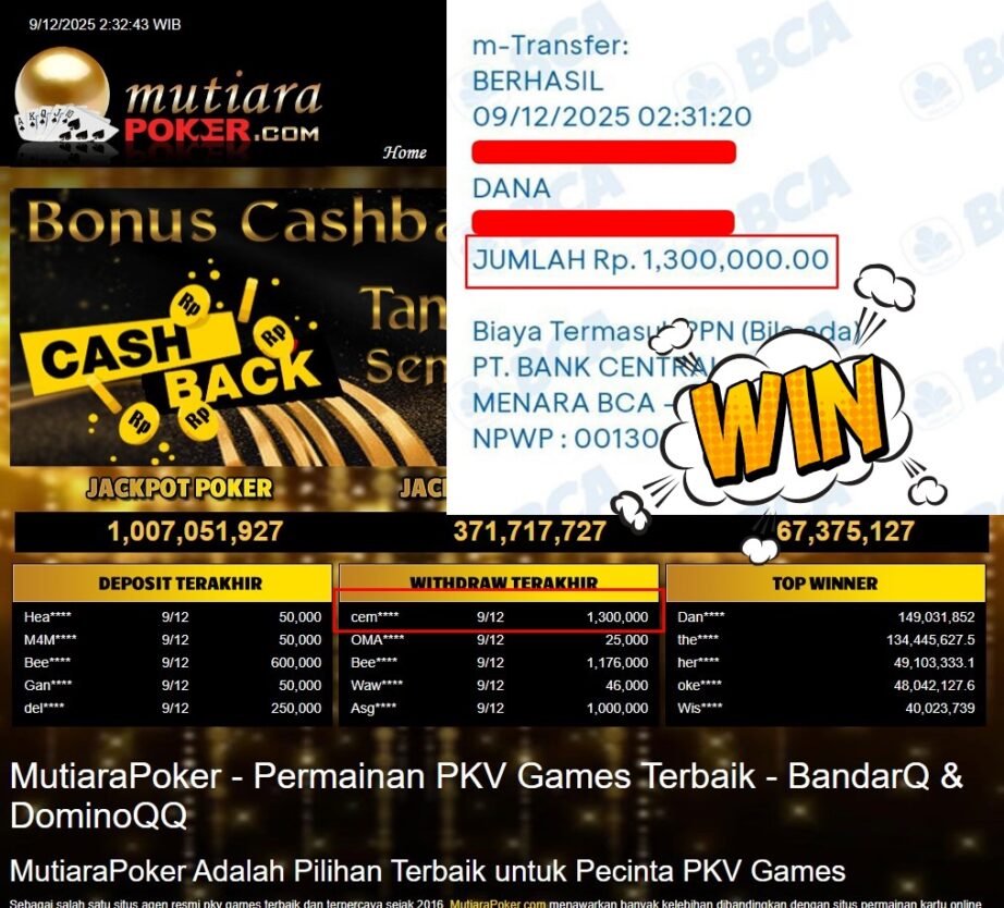 Bukti Withdraw ( 1.300.000,- ) Member Setia MutiaraPoker