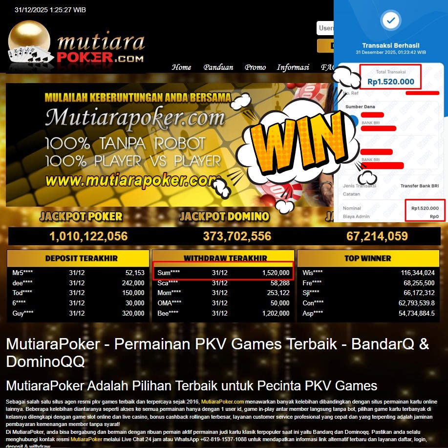 Bukti Withdraw ( 1.520.000,- ) Member Setia MutiaraPoker