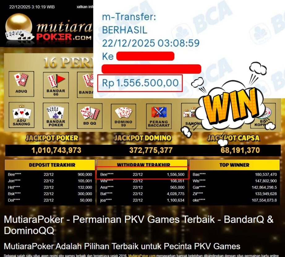 Bukti Withdraw ( 1.556.500,- ) Member Setia MutiaraPoker