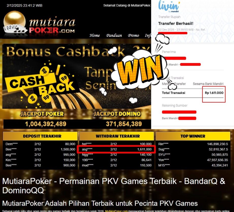 Bukti Withdraw ( 1.611.000,- ) Member Setia MutiaraPoker