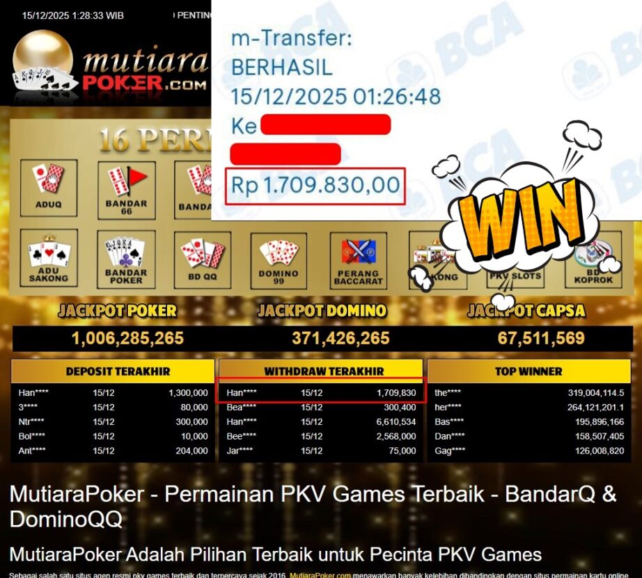 Bukti Withdraw ( 1.709.830,- ) Member Setia MutiaraPoker