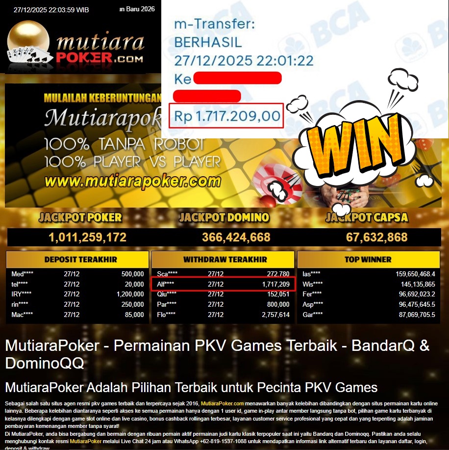 Bukti Withdraw ( 1.717.209,- ) Member Setia MutiaraPoker