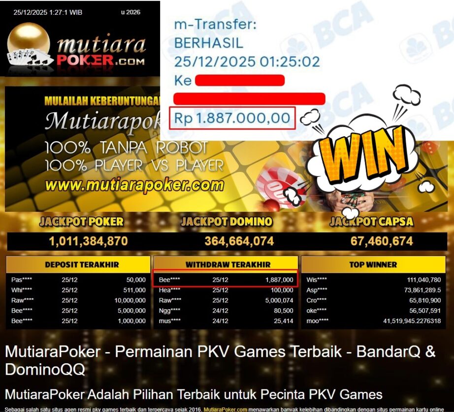 Bukti Withdraw ( 1.887.000,- ) Member Setia MutiaraPoker