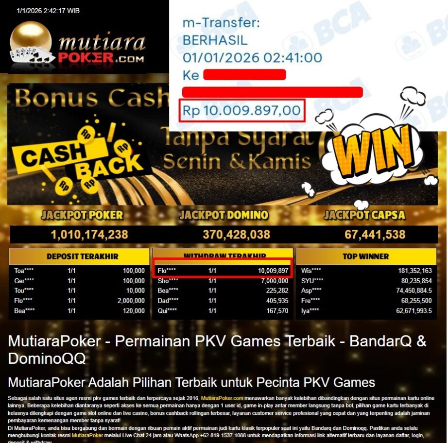 Bukti Withdraw ( 10.009.897,- ) Member Setia MutiaraPoker