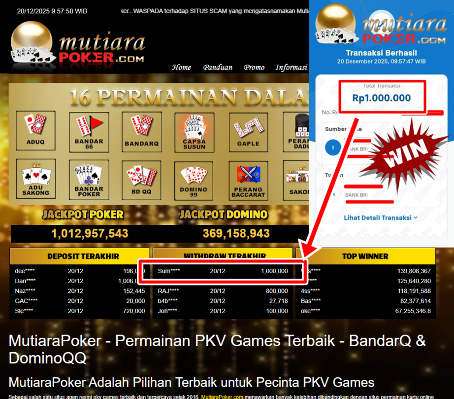 Bukti Withdraw MutiaraPoker