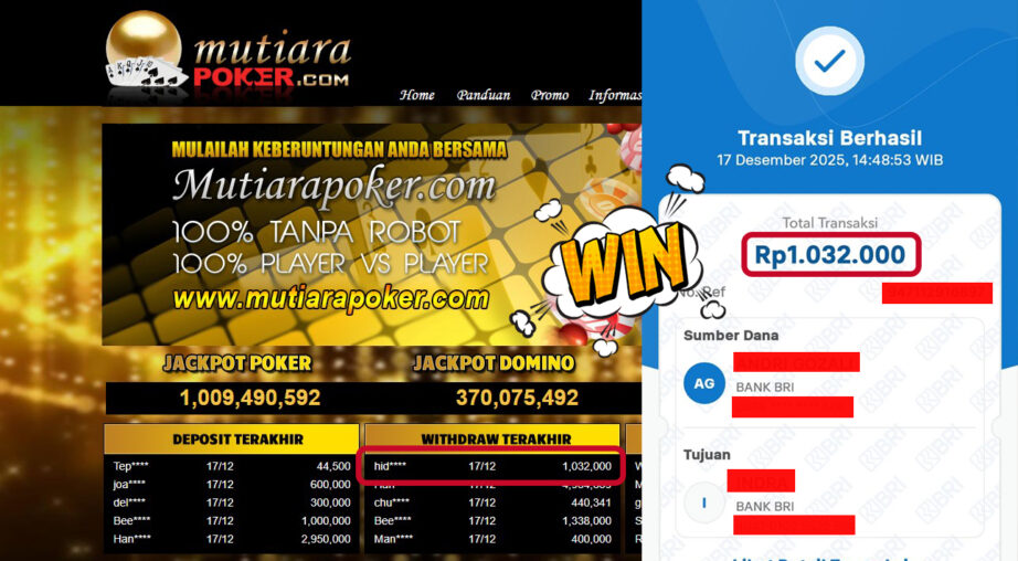 Bukti Withdraw MutiaraPoker