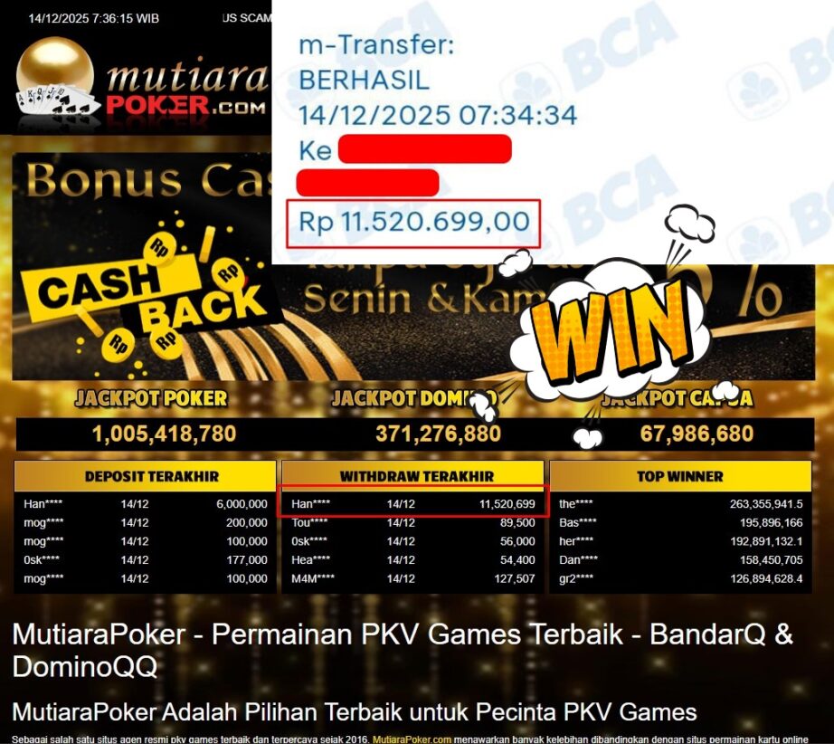 Bukti Withdraw ( 11.520.699,- ) Member Setia MutiaraPoker