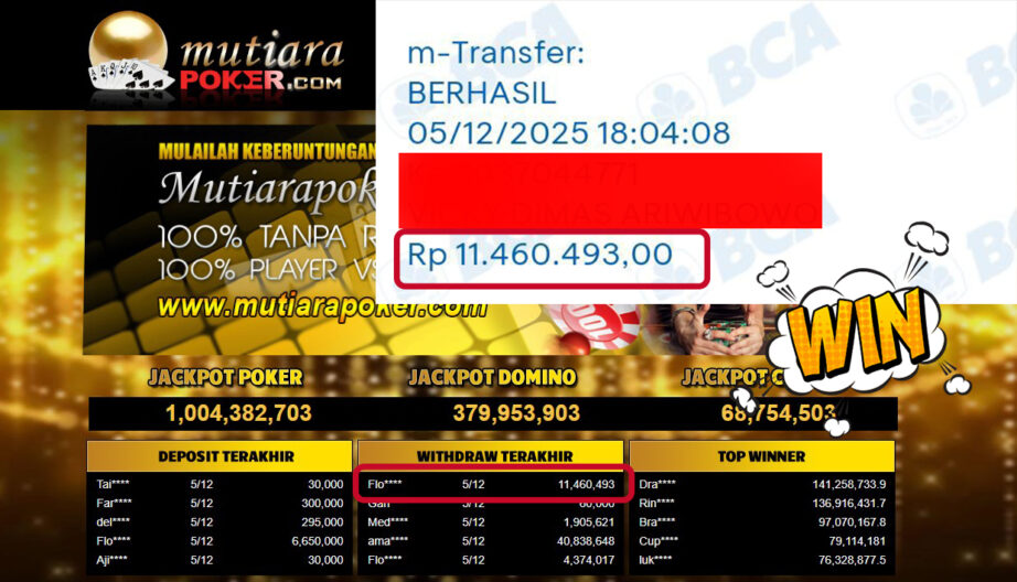 Bukti Withdraw ( 11,460,493,- ) Member Setia MutiaraPoker