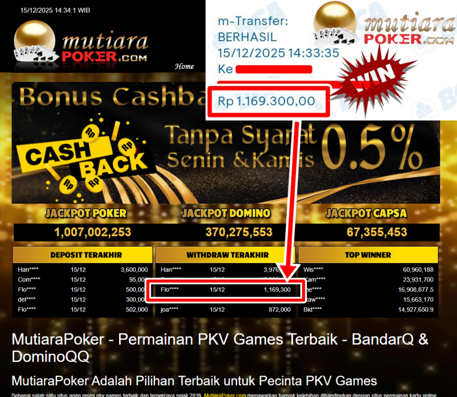 Bukti Withdraw MutiaraPoker