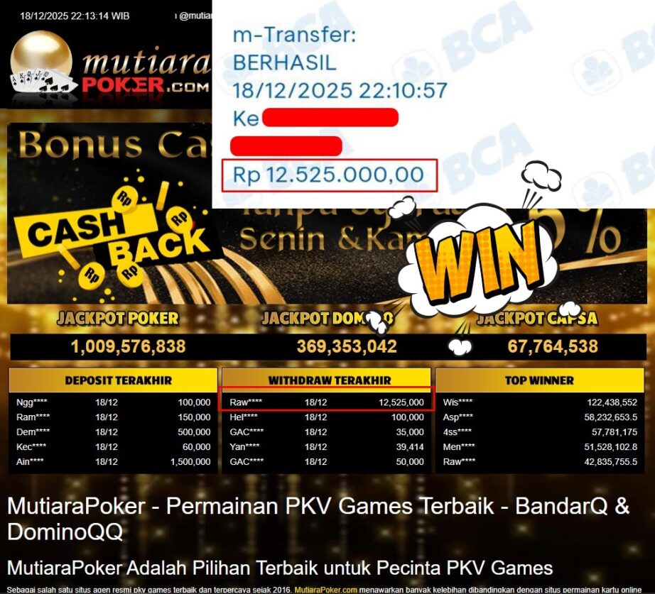 Bukti Withdraw ( 12.525.000,- ) Member Setia MutiaraPoker