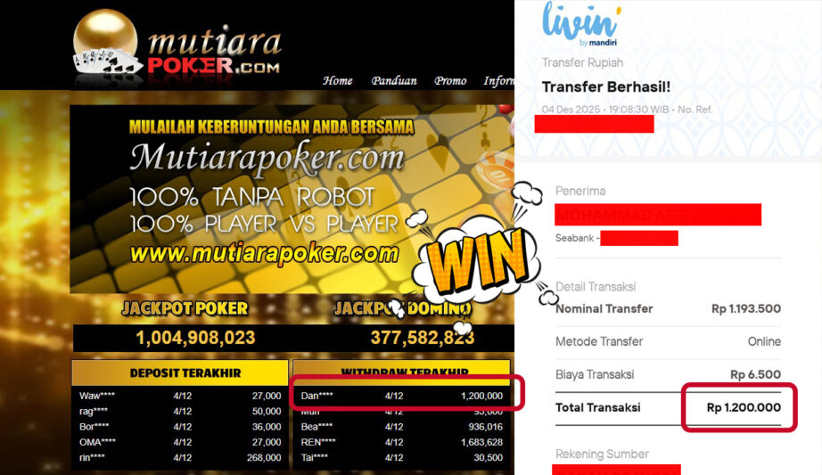 Bukti Withdraw ( 1,200,000,- ) Member Setia MutiaraPoker