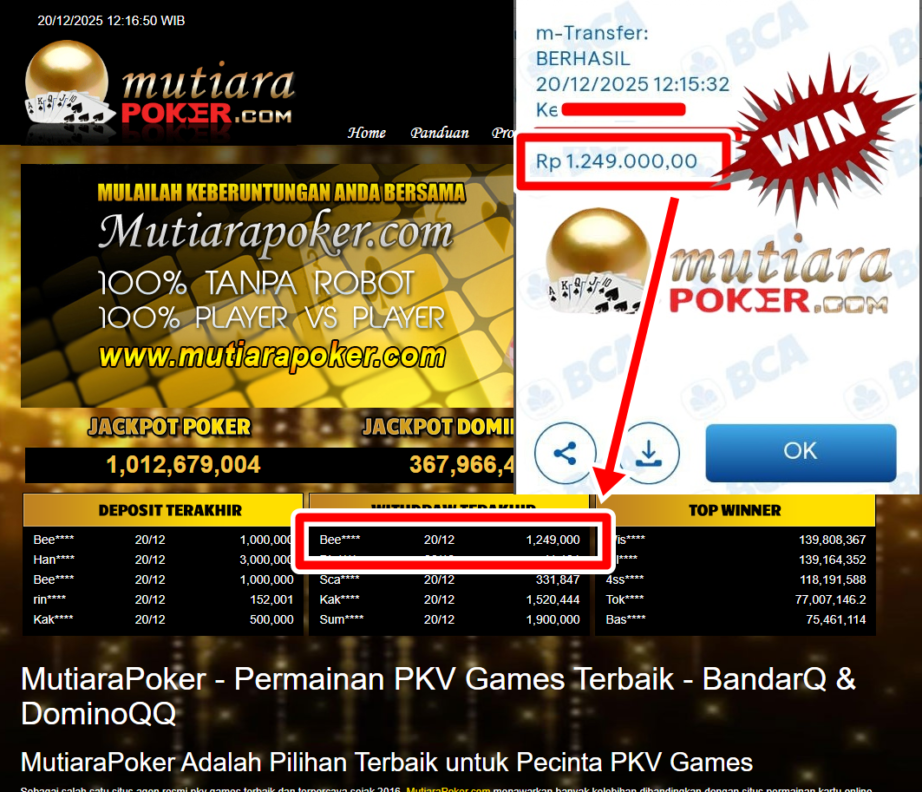 Bukti Withdraw ( 1,249,000,- ) Member Setia MutiaraPoker