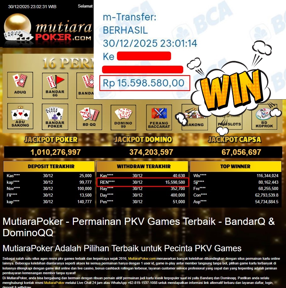 • Bukti Withdraw ( 15.598.580,- ) Member Setia MutiaraPoker