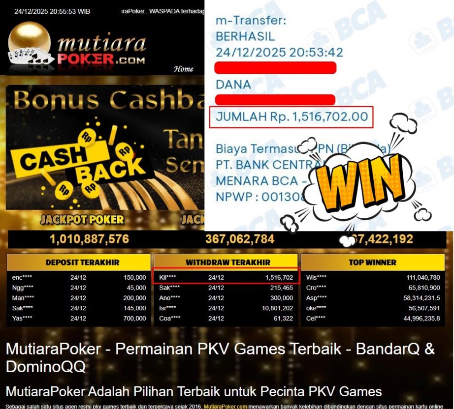 Bukti Withdraw ( 1,516,702,- ) Member Setia MutiaraPoker