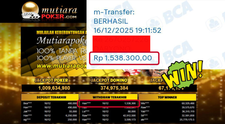 Bukti Withdraw ( 1,538,300,- ) Member Setia MutiaraPoker