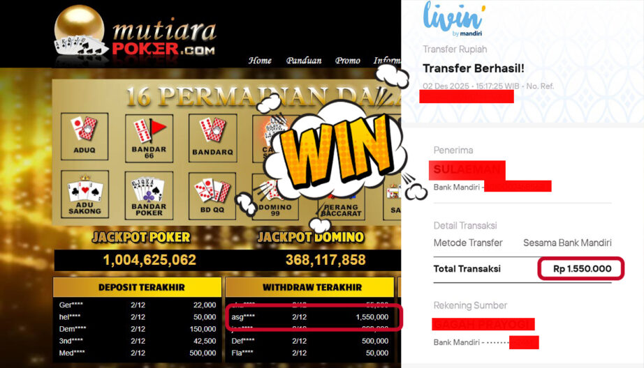 Bukti Withdraw MutiaraPoker