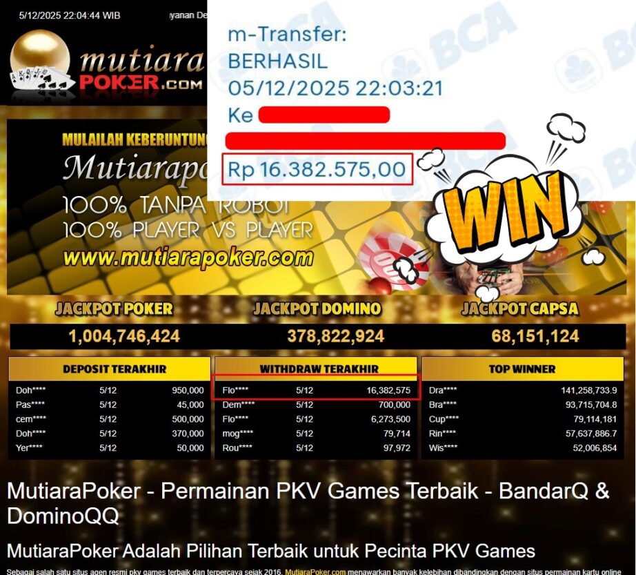 Bukti Withdraw ( 16.382.575,- ) Member Setia MutiaraPoker