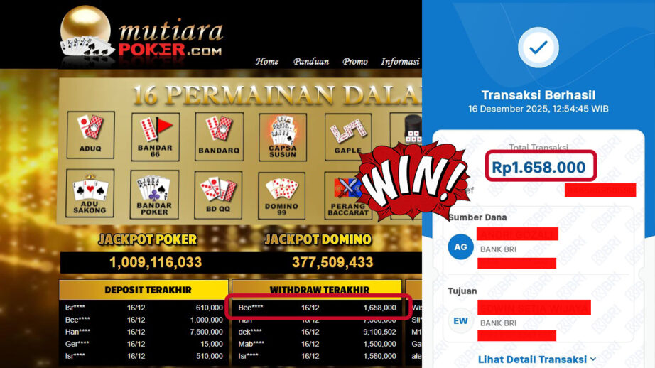 Bukti Withdraw MutiaraPoker