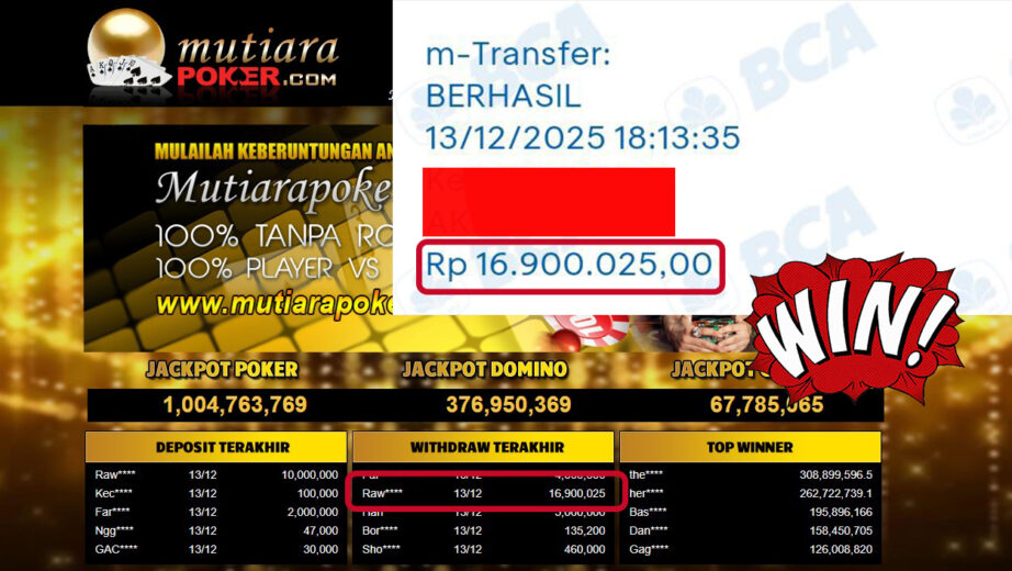 Bukti Withdraw ( 16,900,025,- ) Member Setia MutiaraPoker