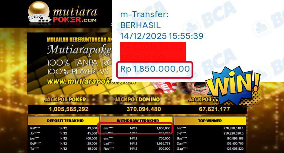 Bukti Withdraw ( 1,850,000,- ) Member Setia MutiaraPoker