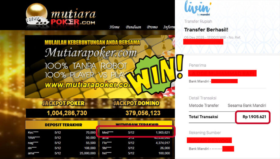 Bukti Withdraw ( 1,905,621,- ) Member Setia MutiaraPoker