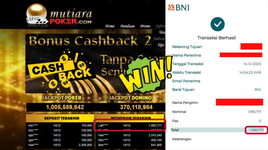 Bukti Withdraw MutiaraPoker