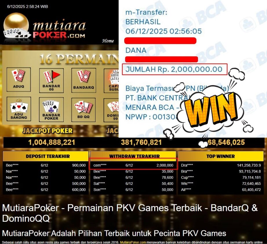 Bukti Withdraw MutiaraPoker