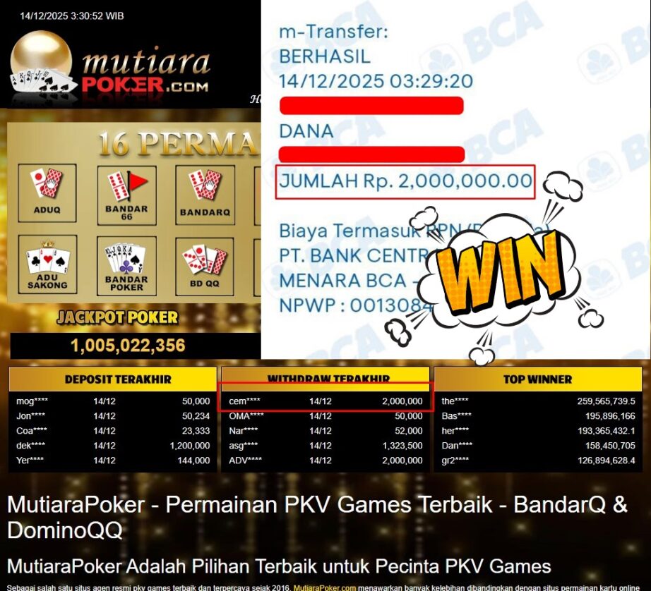 Bukti Withdraw MutiaraPoker