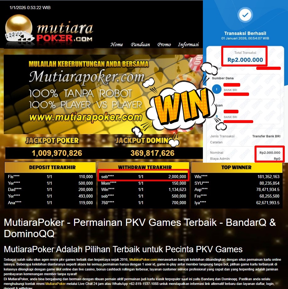 Bukti Withdraw ( 2.000.000,- ) Member Setia MutiaraPoker
