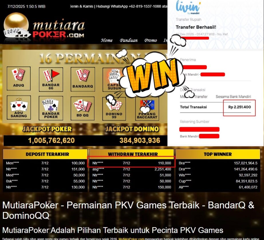 Bukti Withdraw ( 2.251.400,- ) Member Setia MutiaraPoker