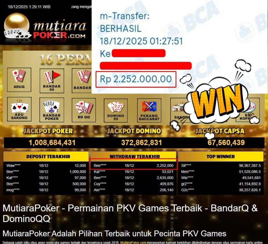Bukti Withdraw ( 2.252.000,- ) Member Setia MutiaraPoker