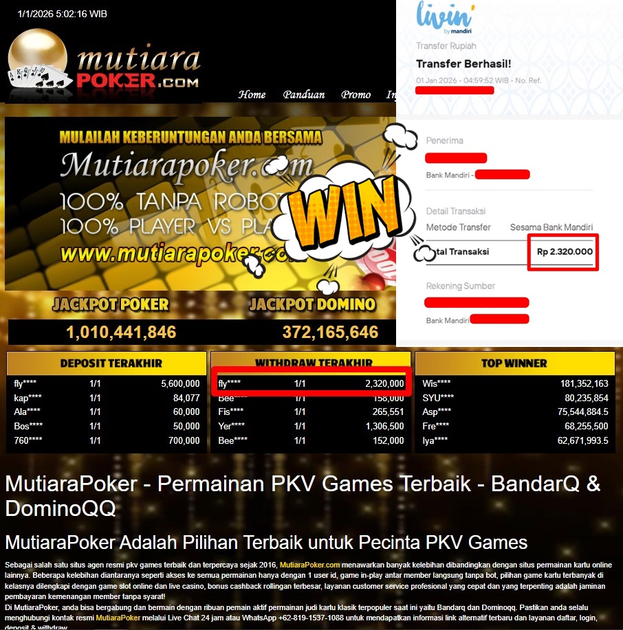 Bukti Withdraw ( 2.320.000,- ) Member Setia MutiaraPoker