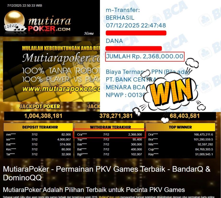 Bukti Withdraw MutiaraPoker
