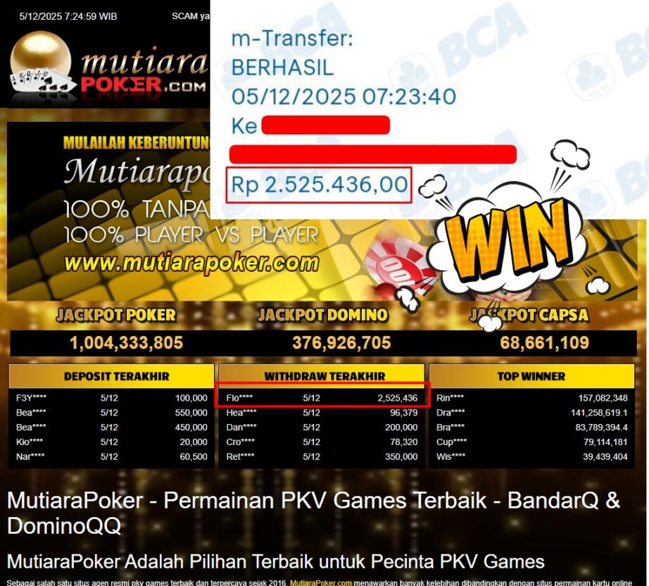 Bukti Withdraw ( 2.525.436,- ) Member Setia MutiaraPoker